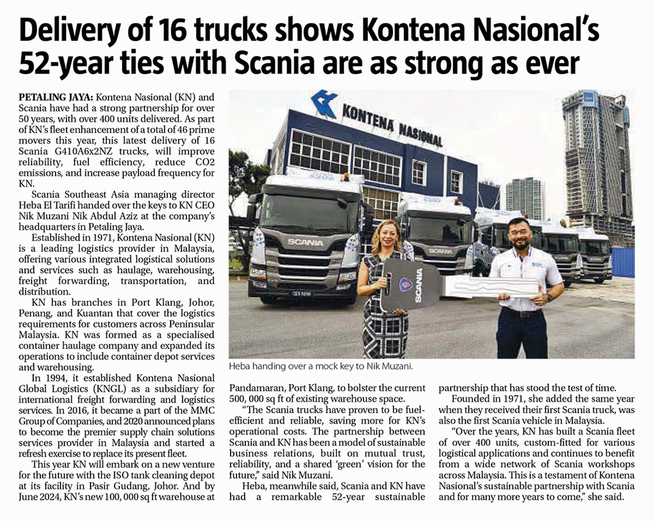 Delivery of 16 Trucks Shows Kontena Nasional’s 52-year Ties with Scania are as Strong as Ever